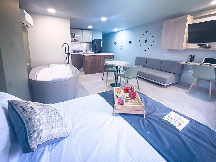 El Apartamento 1-03 Loft Moderno Con Banera Medellin ofrece vistas al jardín y se encuentra a unos 2 km del Parque Norte Medellín.